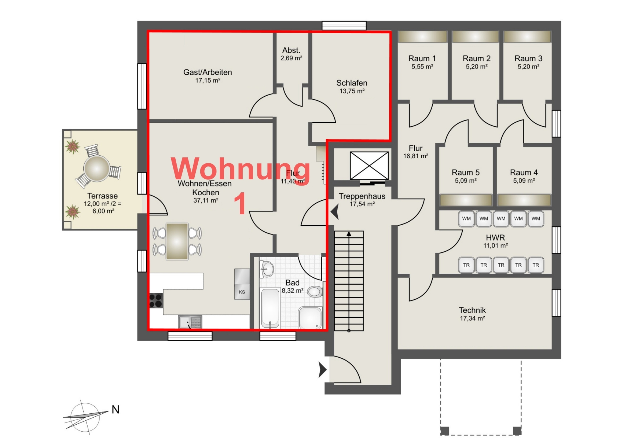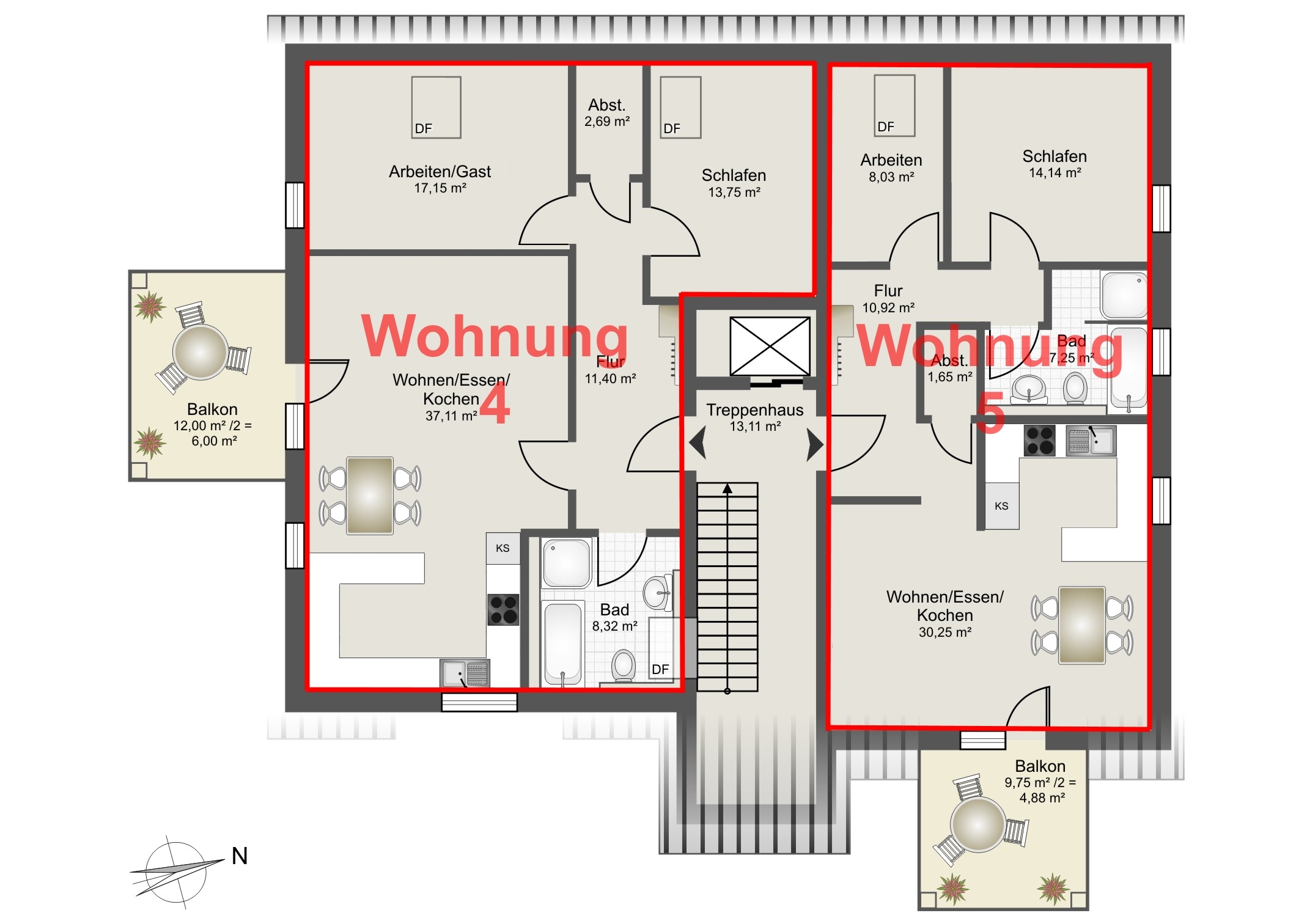 | Wohn-/Nutzflächen | von 68,75 bis 96,91 m² Wohn-/Nutzfläche |